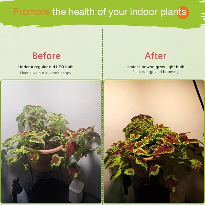 - EASY TO INSTALL AND USE: Lonwon LED grow light bulbs are user-friendly and easy to install. Simply screw them into any standard E26 fixture with shade no less than 6", and they are ready to use. These bulbs are a convenient and efficient solution for providing your plants with the light they need, ensuring easy and effective indoor gardening