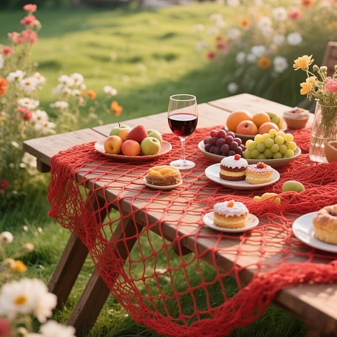 - Tablecloth - Spread this fishnet decoration on your table as a tablecloth. The table covers add subtle decor, and you can even place backdrops on your walls. It will add a realistic touch to beach party decorations.