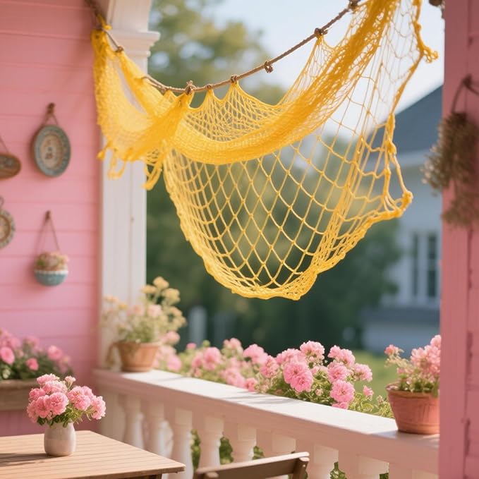 • Party Decorative - Fishnet for decorative party decorations. Perfect for any hawaii, pirate wall backdrop, nautical fishnet decoration, undersea party decoration, sea life banner, adult fishing party accessories, sea animal baby shark, luau, tropical, summer, swimming pool, desert themed bachelor party, mermaid boys and girls Themed birthday party supplies or baby shower decorations. or hang it up to give any room a more nautical feel.