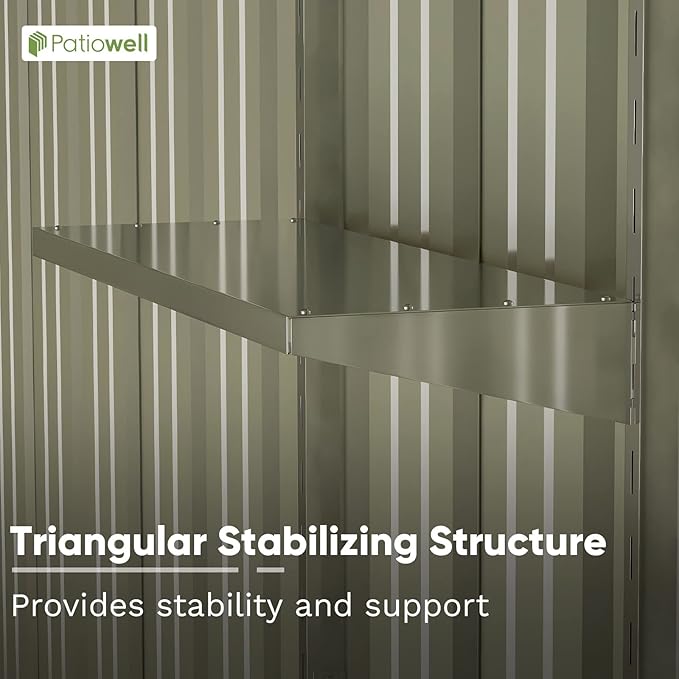 - 【Versatile Usage】Whether you need additional storage for gardening tools, outdoor equipment, or seasonal items, this metal shed is versatile enough to accommodate a variety of storage needs. Tool shed storage racks reduce the risk of injury by keeping sharp or heavy tools off the floor.