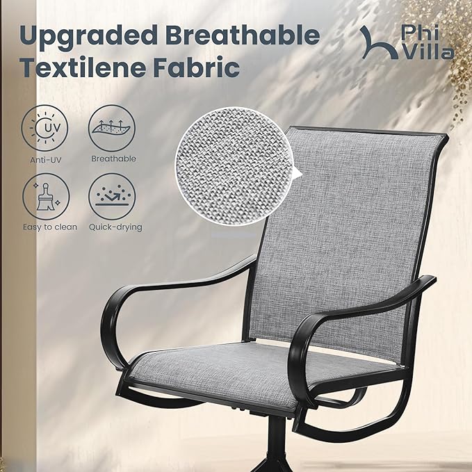 - 360-Degree Swivel & Rocking:This outdoor rocking chair supports 360-degree rotation and gental rocking. The round, swivel base and extra wide seat design make the chair more stable