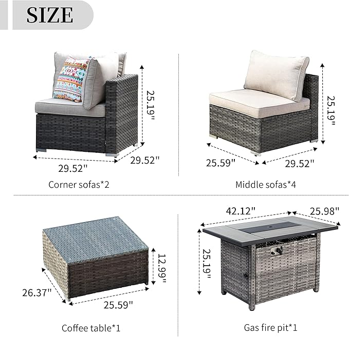 HOOOWOOO 8 Piece Patio Sectional Furniture Set with Fire Pit Table,Modern Wicker Outdoor Conversation Sofa Sets,Weather Resistant Modular L Shaped Outside Couch Set(Beige)