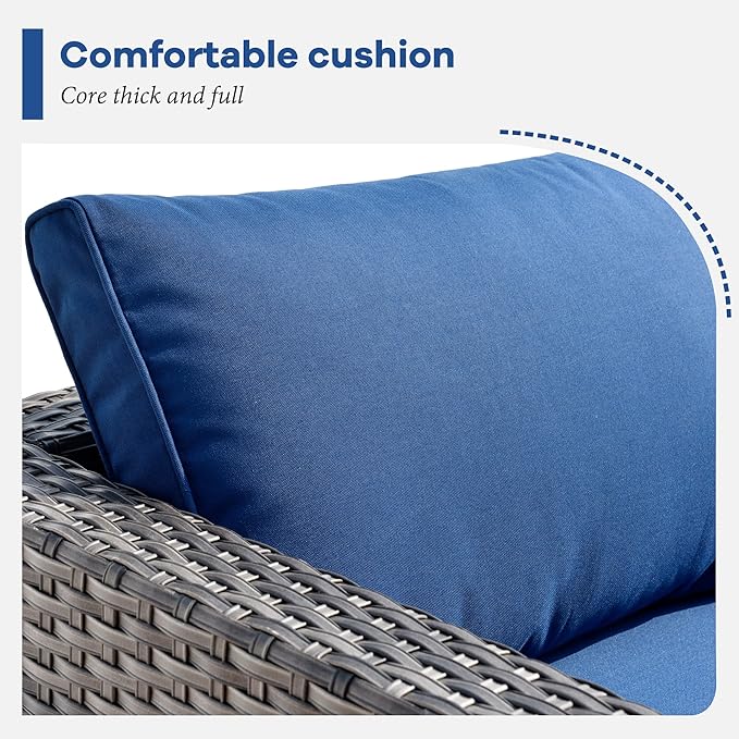 - Comfortable Seating: The seat cushions padded with 3.5 inch thicken and high resilient foam for comfy sitting experience and keeping it not-easy deformed. Thicken back cushion for soft cozy backrest as well as well lumbar spine supporting
