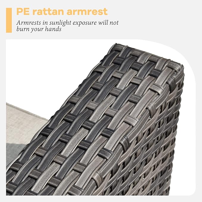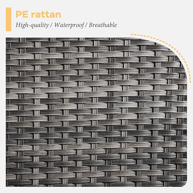 - All Weather & Durable: Selected anti-ageing treated thicken PE wicker rattan for UV resistant, wear resistant and all weatherproof. Coated steel frame ensures strong support and durability. Design for extended service life