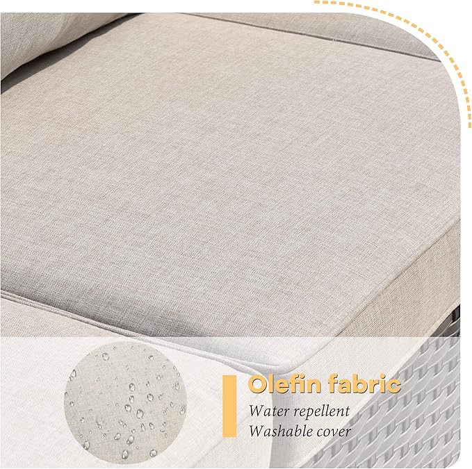 - Yarn Dyed Texture Fabric: Cushions are covered by yarn dyed woven fabric, the yarns are dyed and UV treated before woven into fabric for out door fading resistant. Looks and touches with high-end woven texture. Designed with zippers for easy cleaning. No more worry about getting cheaply made thin dyed fabric