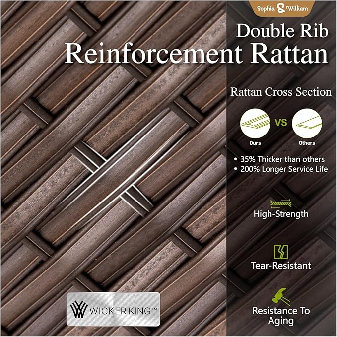 - ALL WEATHER USE: Constructed from allweather hand woven rattan wicker and rustproof steel frame. Sofa cushions are made of patent CUSHION PRO technology fabric which has excellent water resistant, oil-release, and stain-resistant properties, ensure that youll be able to enjoy your set for many seasons to come