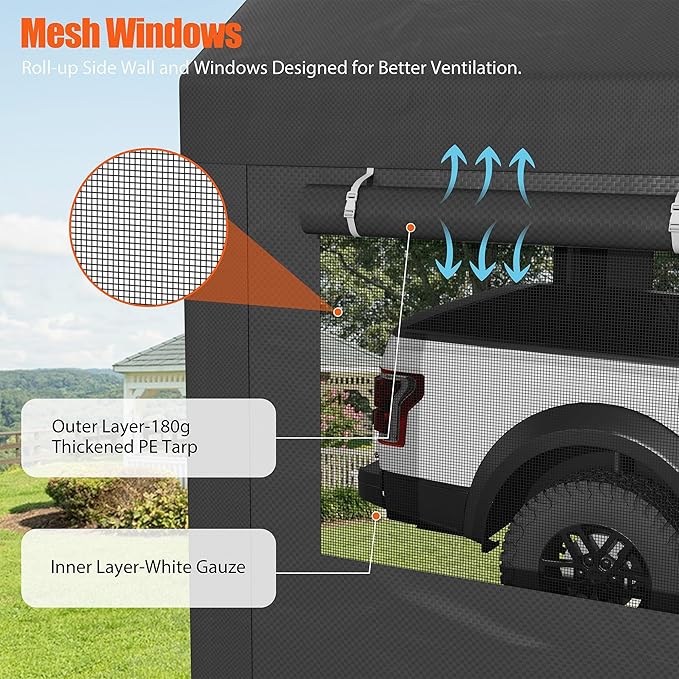 - 【Removable Sidewalls Window and Doors】This carport shelter has 2 removable sidewalls with Roll-up Ventilation Windows. It can help with airflow, and prevent moisture. It also has two removable doors with zippers. You can roll the doors up or down as you wish. Or remove all the sidewalls and doors, only leave the canopy cover on for outdoor activities.