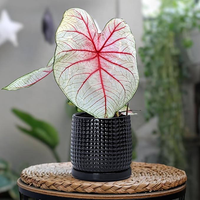 D'vine Dev 4 Inch Ceramic Beaded Stoneware Planter Pot - Flower Pot with Drainage Holes and Saucers for Indoor Succulent Plants or Flowers, Glossy Black, 27-C-Z-2