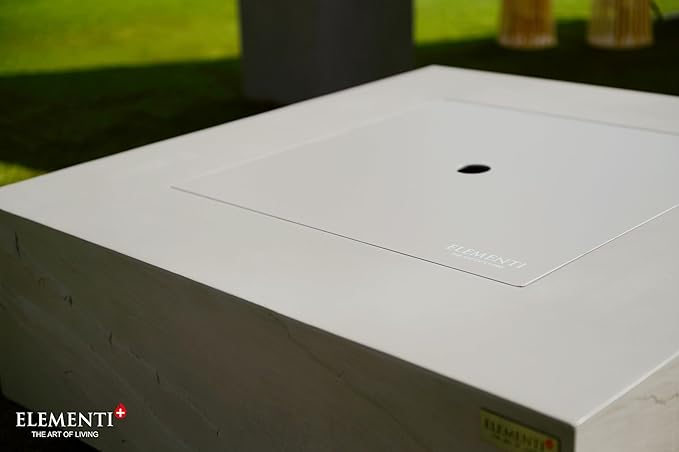 Elementi+ | Bundle Capertee Gas Fire Pit Cast Concrete 40" Square Fire Table, Outdoor Fire Pit Electronic Ignition | Canvas Cover, Fire Glass and Burner Lid Included | Light Gray | Propane Gas