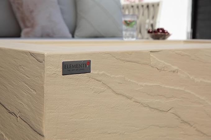 Elementi+ | Bundle Colorado Gas Fire Pit Cast Concrete 56" Rectangular Fire Table | Electronic Ignition | Canvas Cover, Fire Glass and Burner Lid Included | Sunlight Yellow | Natural Gas