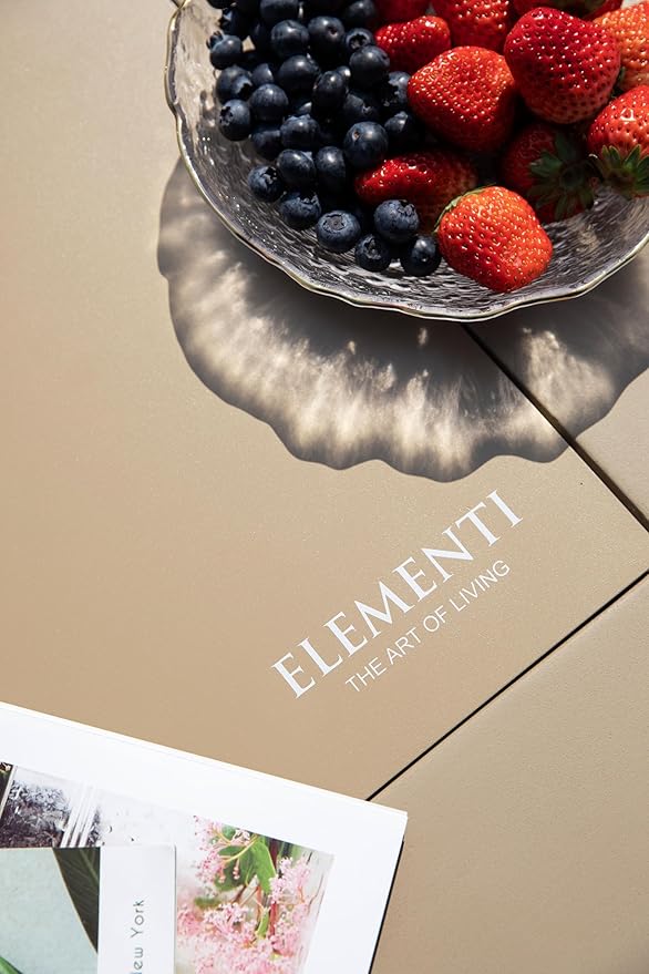 Elementi+ | Bundle Uluru Gas Fire Pit Cast Concrete 40" Square Fire Table, Outdoor Fire Pit Electronic Ignition | Canvas Cover, Fire Glass and Burner Lid Included | Sunlight Yellow | Natural Gas