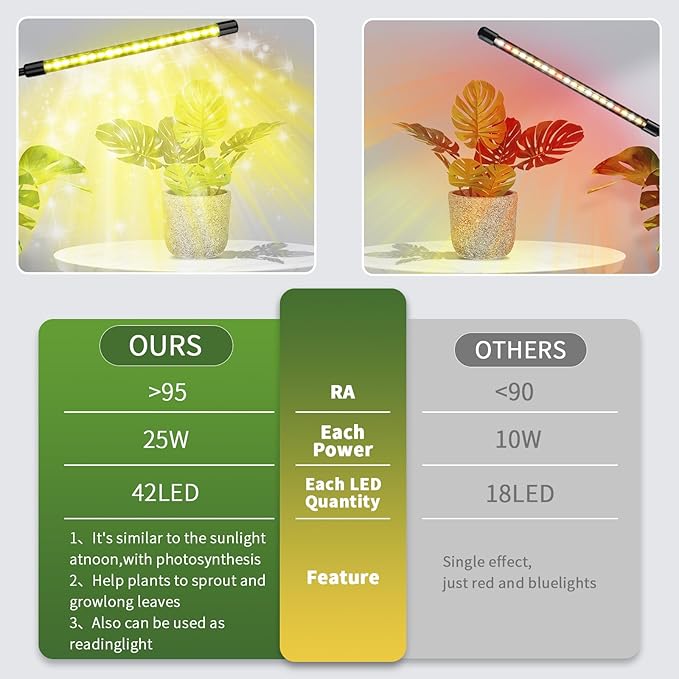 - 【10 Dimmable Levels】 : You can choose the most suitable brightness level for your plant's growing needs. The full spectrum of growth light will do his best to illuminate the dark corners of winter for your plants.