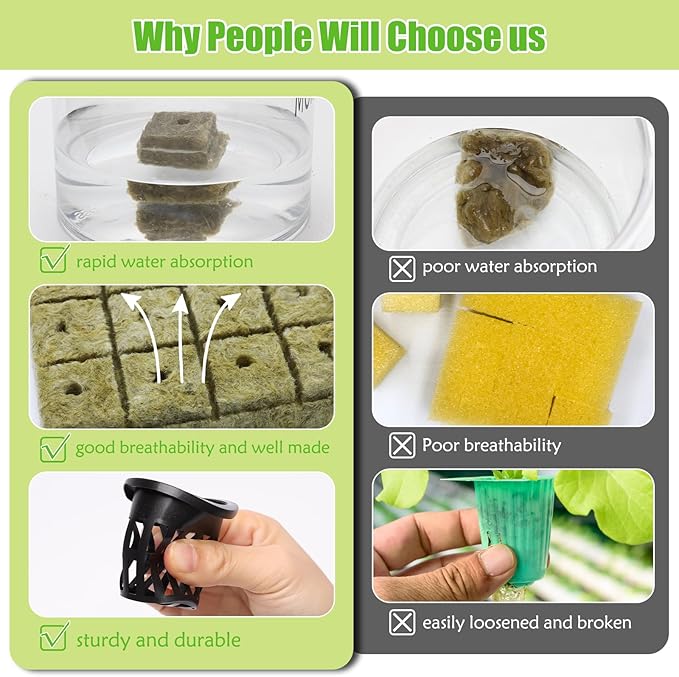 - [ Easy to Transplant ]: The rock wool seed starter cubes has excellent water absorption, good moisturizing properties, and breathability, allowing seeds to have sufficient water development, promoting rapid root development, and improving the success rate of transplantation.