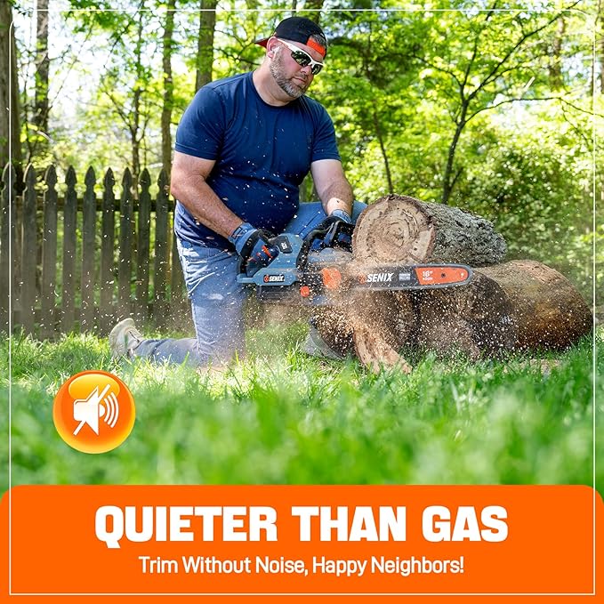 - EFFORTLESS MAINTENANCE & PRECISION CONTROL: SENIX chain saw features tool-free tensioning and automatic oiling. ECO Mode optimizes this 16 inch chainsaw battery included tool for energy efficiency while tackling delicate pruning tasks.
