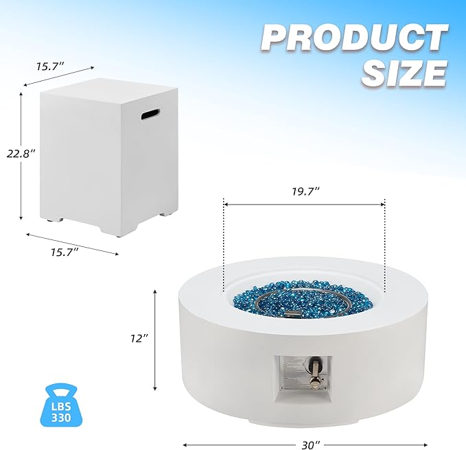 - Steady & Cozy Flame for Outdoor Warmth: Enjoy a warm and safe outdoor experience without smoke, ash, or messy firewood. With CSA certification, this Concrete fire Pit delivers up to 50,000 BTU of steady heat. Simply turn the knob to ignite beautiful adjustable flames—from low to high—perfect for cozy patio nights