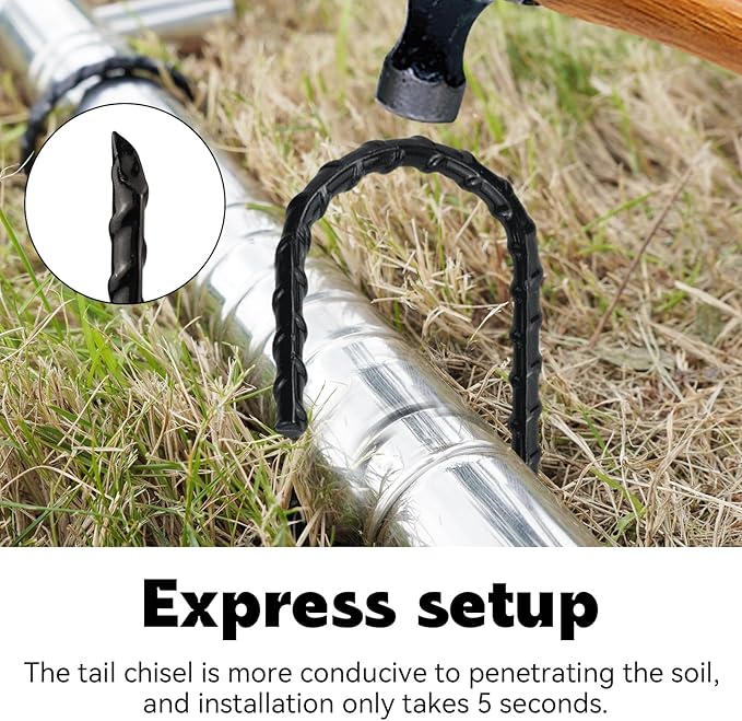 - MULTIPURPOSE: J-shaped reinforced ground stakes can be used to fix waterproof fabrics, canopies, fences, sports nets, camping, tents, trampolines, irrigation pipes, courtyard decorations, etc.