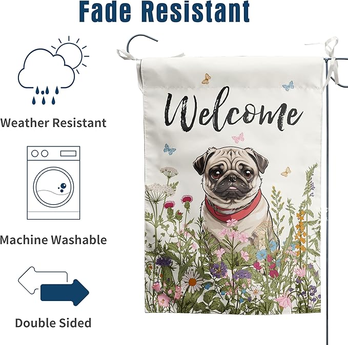 - ✔ 【Premium Quality】-- The spring summer pug yard flag is made of sturdy all-weather polyester, double layer stitching and reinforced corners improve durability