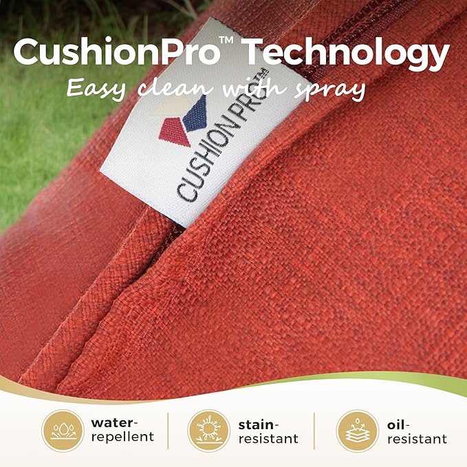 - 【INNOVATIVE CUSHIONPRO TECHNOLOGY】The patented CushionPro outdoor fabric provides advanced water-repellent, soil-release, and stain-resistant properties for easy maintenance. Simply using a sponge and cleaning spray keeps your outdoor furniture looking fresh and inviting