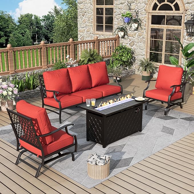 - 【OUTDOOR FURNITURE SET】Including 2 x rocking chairs, 1 x 3 seater couch, 1 x 45" gas firepit table. Perfectly fitting with your backyard, poolside, porch, garden, and deck to create an outdoor comfort zone for you