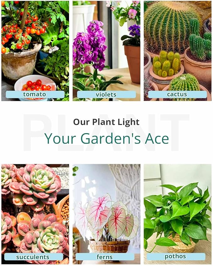 - Full Spectrum & Energy-Efficient: The full spectrum grow light features emit all wavelengths from 380nm to 780nm, similar to natural sunshine, to provide energy for your plants to survive and thrive indoors year-round