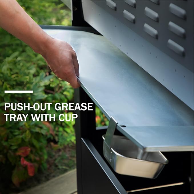 - ๐๐๐ฌ๐ฒ ๐ญ๐จ ๐๐ฅ๐๐๐ง: The full-size grease tray slides out smoothly, making it a breeze to deal with grease and drippings while you're grilling. Plus, the handy cup lets you easily get rid of the collected grease, keeping the post-grill cleanup hassle-free. This design also ensures your food tastes its best by preventing excessive grease from affecting the flavor