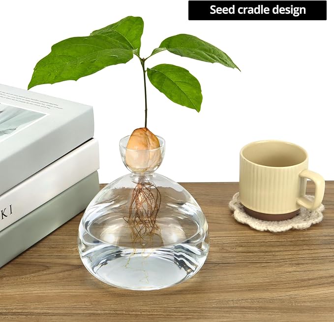 - Elegant Design: This glass growing vase features a simple yet sophisticated design with a tapered base, ensuring stability and a touch of elegance to any space. Its clear and smooth surface showcases the beauty of growing avocado seeds.