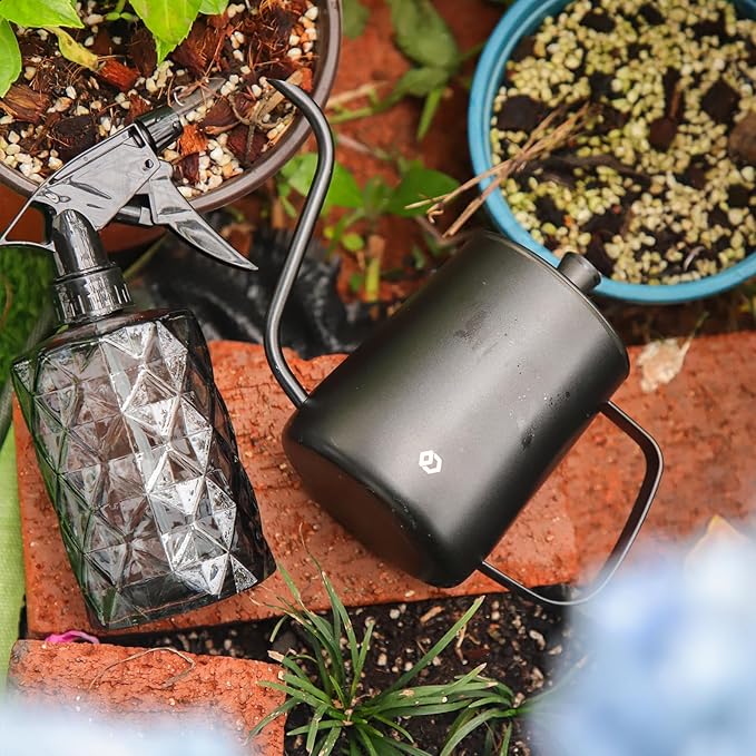 - 【Size and Capacity】The watering can and spray bottle set is ideal for indoor plant care. Each package includes a 21oz/600ml stainless steel watering can and a 14 oz /400ml glass spray bottle. This combination meets all your needs!