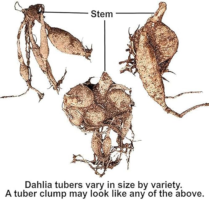 - 5 GALLON SIZE BARE ROOT TUBER - The large 5-gallon size tuber ensures robust growth and healthy, flourishing dahlia plants with impressive blooms. Perfect for both garden beds and large containers.