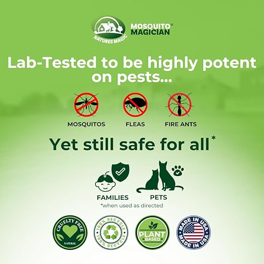 - KILLS MOSQUITOES, FLEAS & FIRE ANTS – Mosquito Magician Liquid Concentrate is LABORATORY TESTED to kill 100% of mosquitoes, fleas, and fire ants within 24 hours. Perfect for large outdoor spaces like yards, patios, and lawns, it’s an effective mosquito yard spray and mosquito treatment for yard. It also works with Sprinkler Magician automated Smart Yard Systems. (Lab test reports are available upon request.)