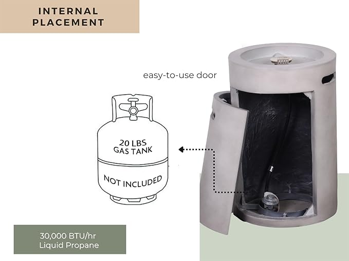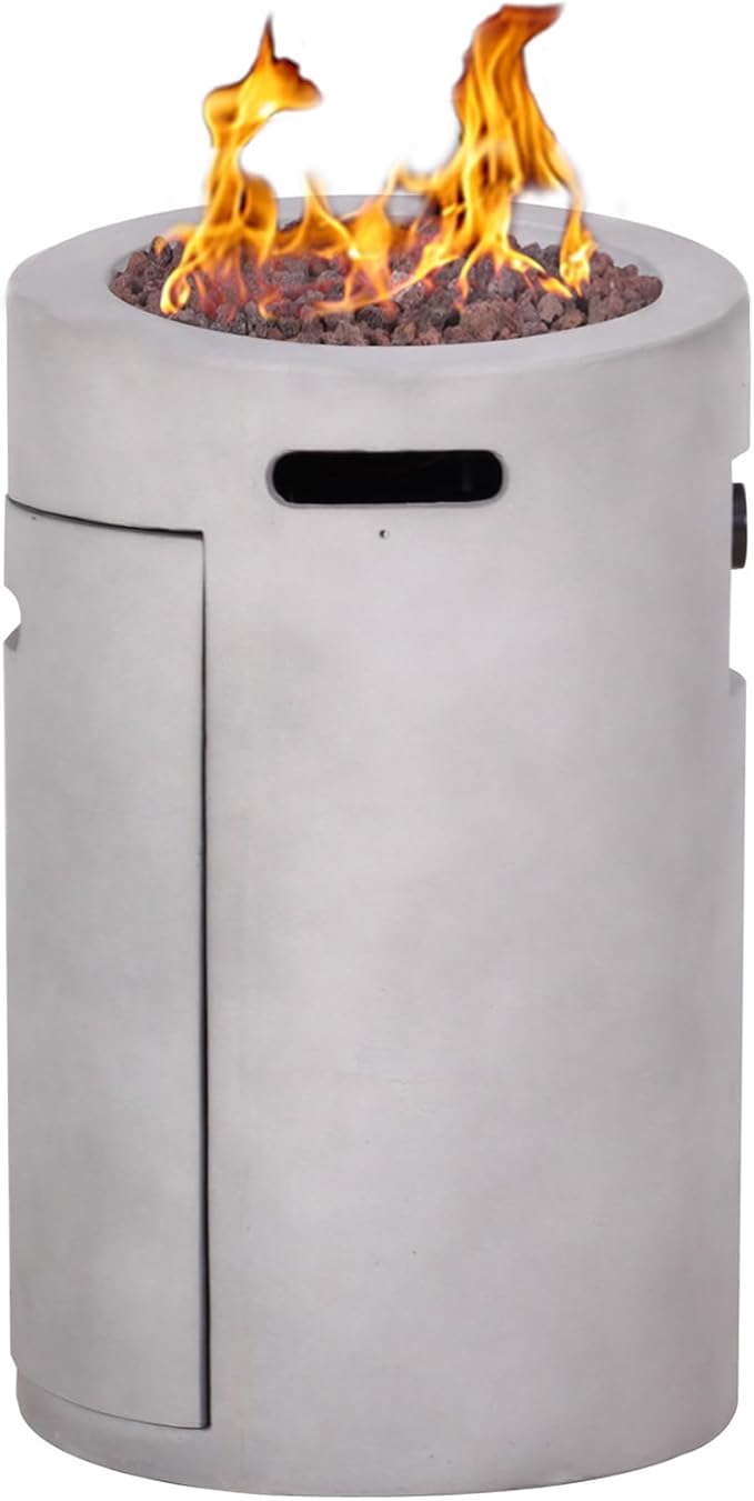 - Stylish and Functional: Enhance your outdoor living space with our Ф16" round fire pit. Its sleek design in a cement gray color adds a modern touch to any patio or backyard. Enjoy the warmth and ambiance of a real fire with the convenience of liquid propane fuel