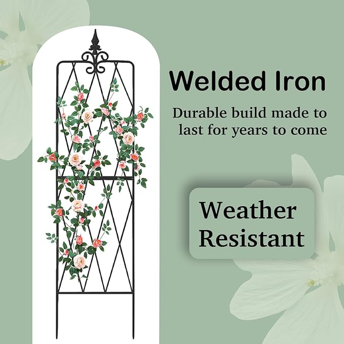 - Premium & Sturdy Material: Crafted with rust proof black powder coated finish, this trellis for climbing plants outdoor providing an extra layer of protection against rusting and weather elements like rain, UV, and snow, making it could be used for both outdoor and indoor decoration. Features an architectural structure and solid 8mm pipe support for your lovely plants, this metal garden trellises is sturdy and has long-lasting durability