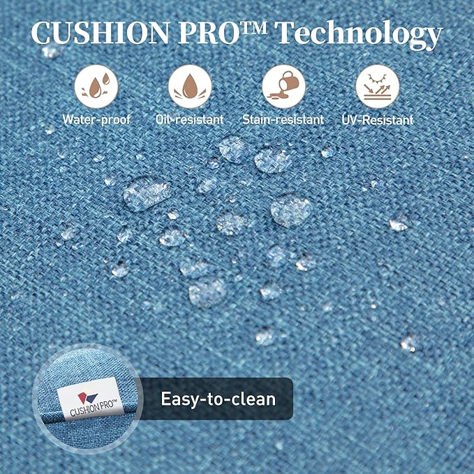 - ADVANCED CUSHION FABRIC TECH: Experience the happiness of easy maintenance with the SUNSHINE VALLEY patio conversation set. The fabric of this patio furniture set is made with CUSHION PRO technology. It has excellent waterproof, oil-proof, and stain-resistant properties making the dirt easily wiped down. It can really meet your outdoor leisure needs