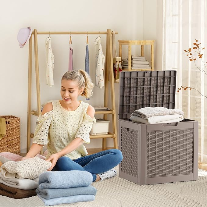 - Wicker Design: This resin storage box features a wicker pattern design, making it an excellent decoration for patios, gardens, yards, porches, and poolside areas.