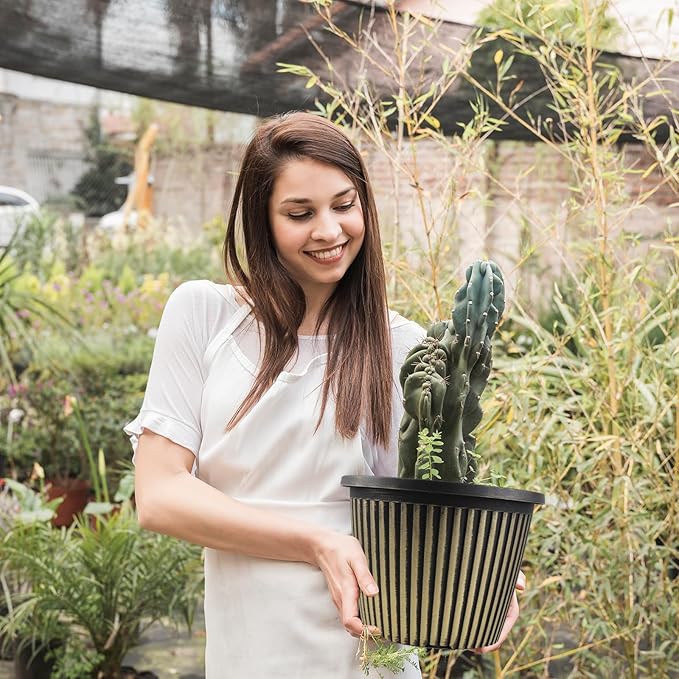 - 【MODERN STYLE PLANTERS】 Indoor planters with saucers provide a unique,nice style in ribbed design which gives an understated elegance that will enhance the beauty of your plant. These 12 inch plant pots are available in red-brown &blue-green & gold finished with a black antique stain. Plastic flower pots would be a beautiful addition to anyone’s deck or sunroom or house!