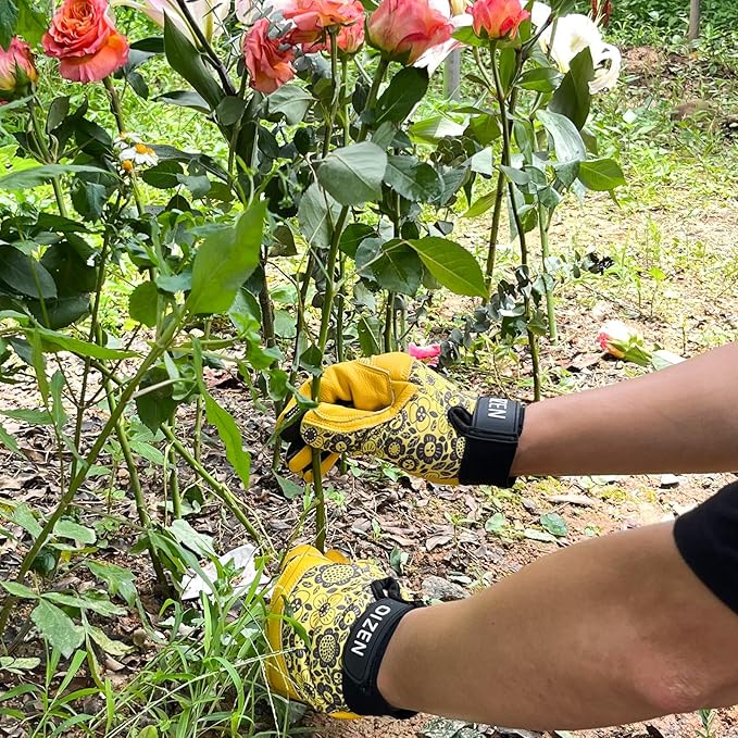- Crafted for Durability: This gardening glove is made of carefully selected grain cowhide to ensure abrasion resistance, which is not only thick but also soft and flexible with moderate oil resistance, puncture resistance and cut resistance. The back of the hand is made of elastic, breathable and sweat-absorbing material, which can keep our hands dry and easily complete all works in the garden.