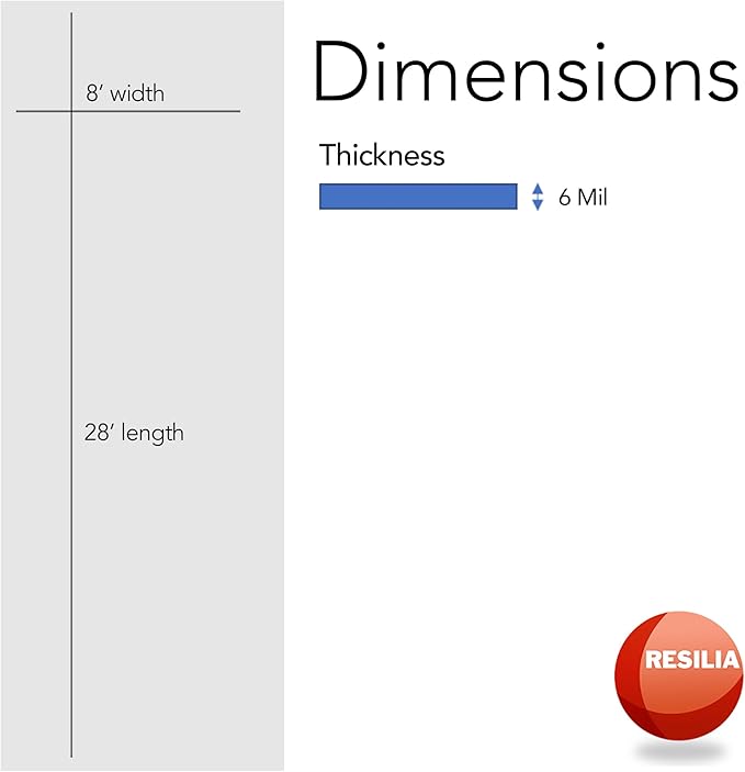 RESILIA Clear Greenhouse Sheeting - UV-Protected, Heavy-Duty Gauge Outdoor Polyethylene Cover for Weatherproofing Greenhouses, Garden, Plants, 8-Foot by 28-Foot Roll, 6-Mil Thick, Made in The USA
