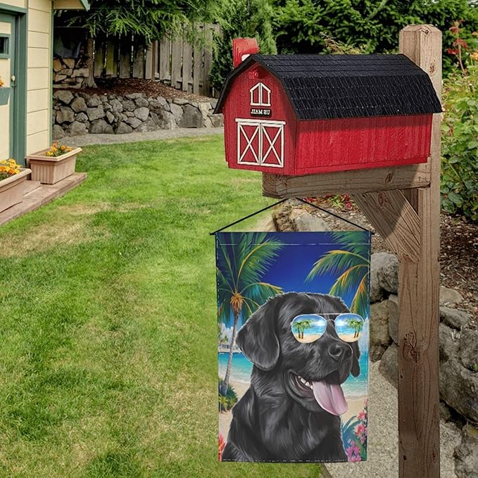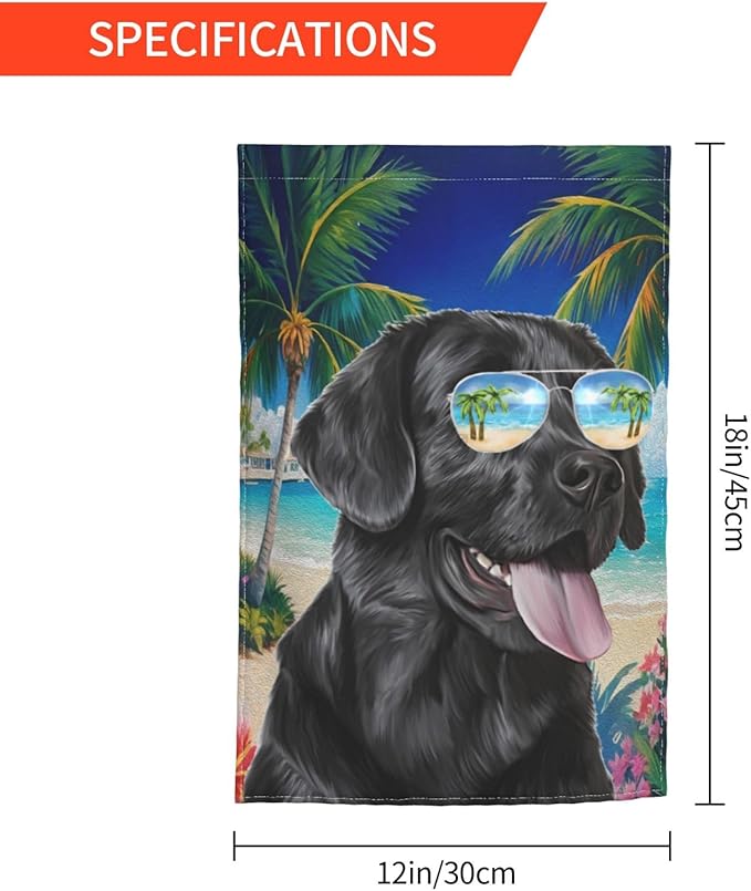 Labrador Dog Summer Beach Palm Trees Tropical Garden Flag Welcome Party Outdoor Outside Decorations Picks Home House Garden Yard Decor 12x18 Inch