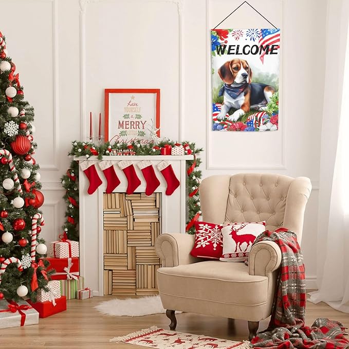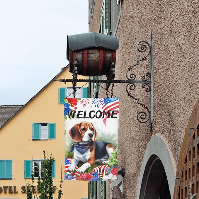 Beagle Dog Independence Day Patriotic American Dog Garden Flag Welcome Party Outdoor Outside Decorations Picks Home House Garden Yard Decor 12x18 Inch