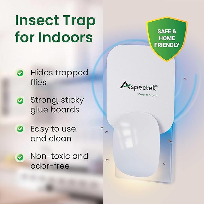 - Safe and Silent Insect Catching – Uses UV light to attract flying insects like fruit flies, gnats, and moths to a hidden glue pad—no zapping, noise, or chemical fumes, making it safe for use around children and pets.