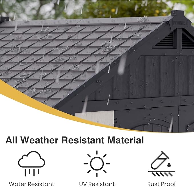 - Recyclable And Durable Material: Made from recyclable materials, this shed is lightweight and durable. The beige wall and gray roof enhance its beauty and fashion.