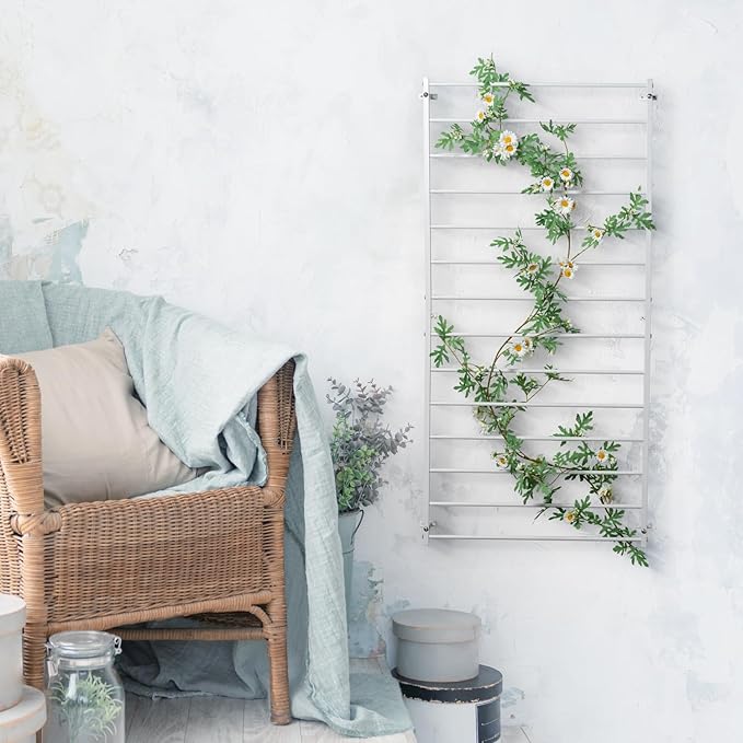 - Hanging wall mounted modern white metal trellis for climbing plants and crawling vines in outdoor gardens **Assembly required**