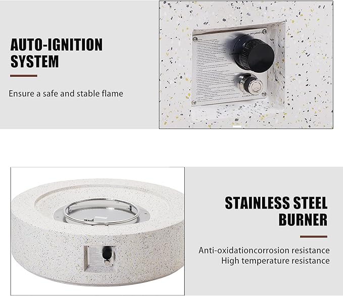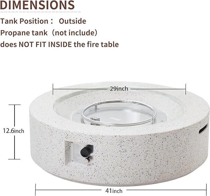 - 🔥Lightweight Concrete: This propane fire pit and tank holder set is constructed of lightweight concrete and features a modern light beige finish. This provides a highly durable structure that can hold a substantial amount of weight