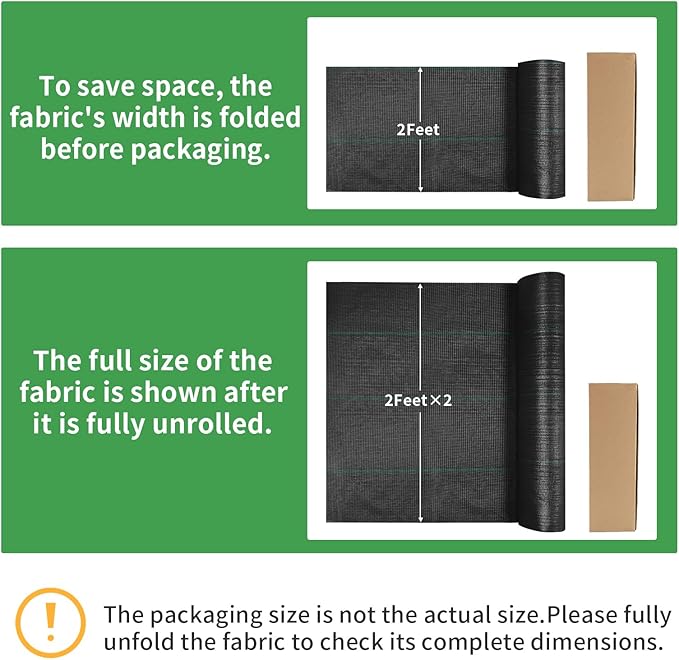 - Easy Installation: The Weed barrier landscape fabric is easy to install and use, the green lines on it help you to arrange the plants in rows, or you can use scissors to cut it into any shape or size you want, it is very convenient and practical (Installation tools are not included).