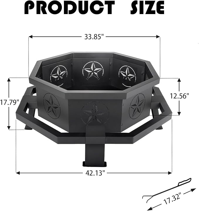 - 【DURABLE MATERIALS】This octagonal fire pit is made of 100% iron, will not deform even after long-term use,sturdy and stable.Its superior rust resistance and durability make it perfectly suited for outdoor use.