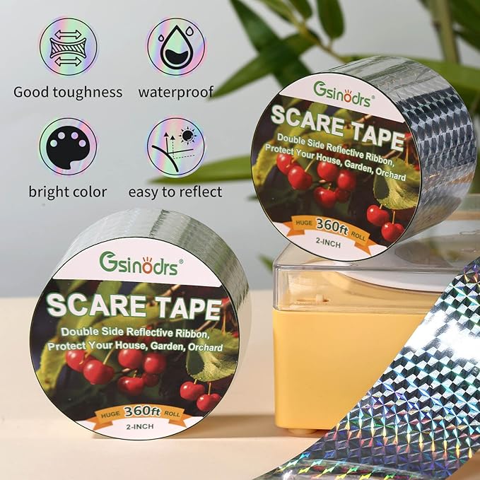 Bird Tape Repellent - Double Reflective Tape Ribbon, Bird Scare Tape, Effective Against Birds and Animals, Ideal for Gardens, Orchards, Farms and Outdoor Areas(2IN * 360FT)
