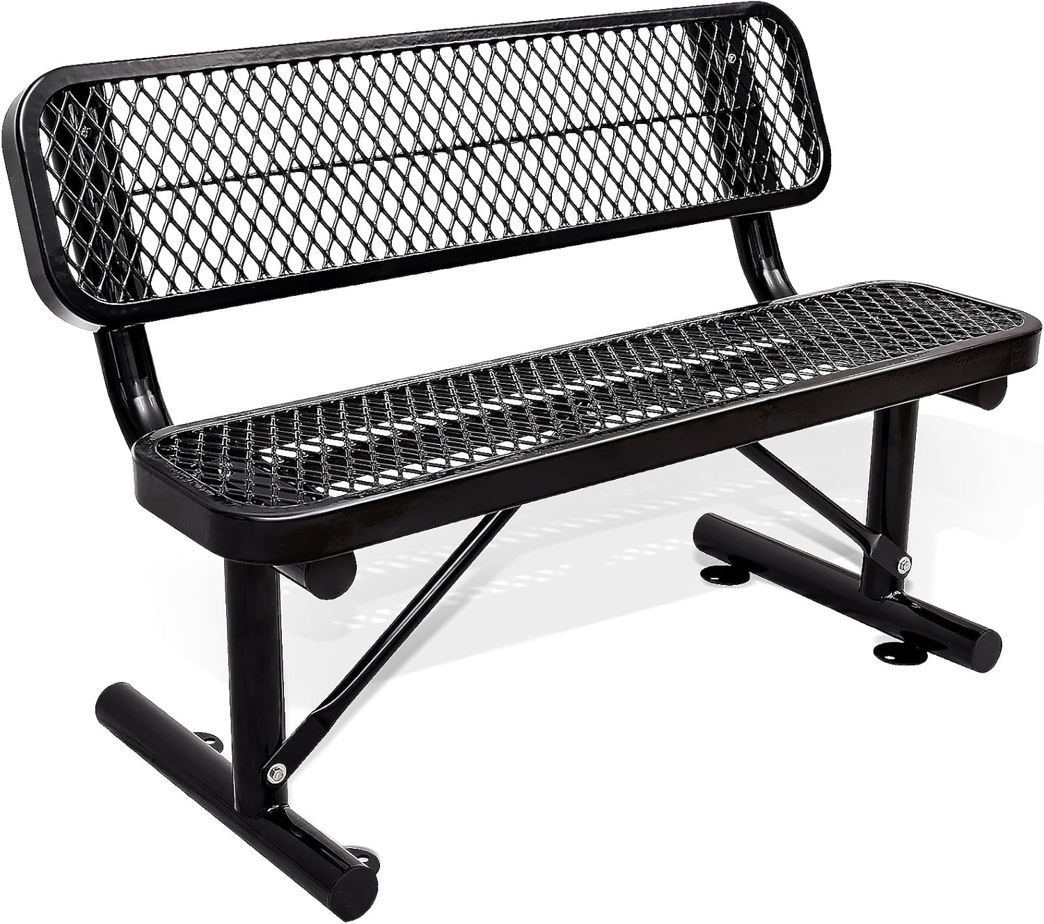 4FT Heavy Duty Park Bench with Back Portable Frame, Outdoor Metal Park Bench with Backrest, Steel Mesh Outdoor Bench for Garden, Lawn, Patio, Porch, Park, Yard (Black, 48" D x 23.2" W x 32.5" H)