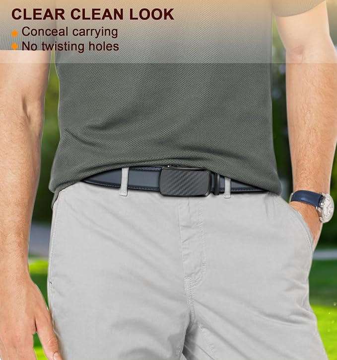 - PRECIESE FIT--The Bulliant men's belt is installed an slide ratchet with 32 notches and each gapped at 1/4",with this belt,you can get an perfect fit any time for all-day comfort. Just say goodbye to the hassle of belts that are too tight or too loose;