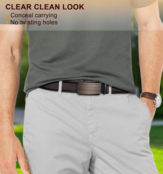 - PRECIESE FIT--The Bulliant men's belt is installed an slide ratchet with 32 notches and each gapped at 1/4",with this belt,you can get an perfect fit any time for all-day comfort. Just say goodbye to the hassle of belts that are too tight or too loose;