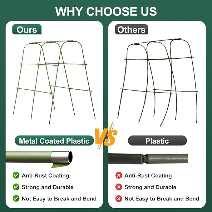 - Premium Quality: Crafted from durable plastic-coated steel core, our garden cucumber trellis offers reliable stability. Ideal for supporting climbing plants and raised beds, providing strong structural support