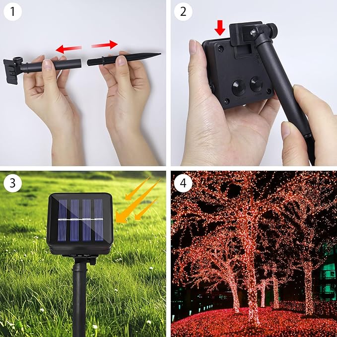 - IP65 Waterproof and Heat-resistant: Both the string lights and the solar panel are IP65 Waterproof. Copper wire insulation, will not overheat. No worry to use them in the rain and hot sun